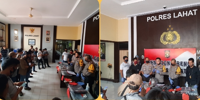 Kapolres lahat AKBP Irwansyah SIK. MH. CLA menjelaskan hal itu dalam press conference kasus pembunuhan berdasarkan Lp/B-14/VII/2020/res lahat/sek Merapi Barat tanggal 6 juni 2020, di Ooproom Polres Lahat, Kamis (10/07/2020) .