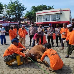 TG-PINANG | Populinews.com. Merayakan hari raya Idul Adha 1441 H, Polres Tanjungpinang melaksanakan penyembelihan hewan kurban, Jumat (31/07/20)