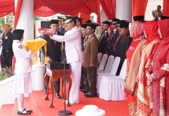 Sedangkan untuk petugas pengibar bendera hanya berjumlah 3 orang saja terdiri dari, Saverino Sandi Nikolas/ siswa SMAN 2 Singkep, Kab Lingga, Araya Yunandra dari siswa SMAN 1 Bintan Utara, Kab Bintan.