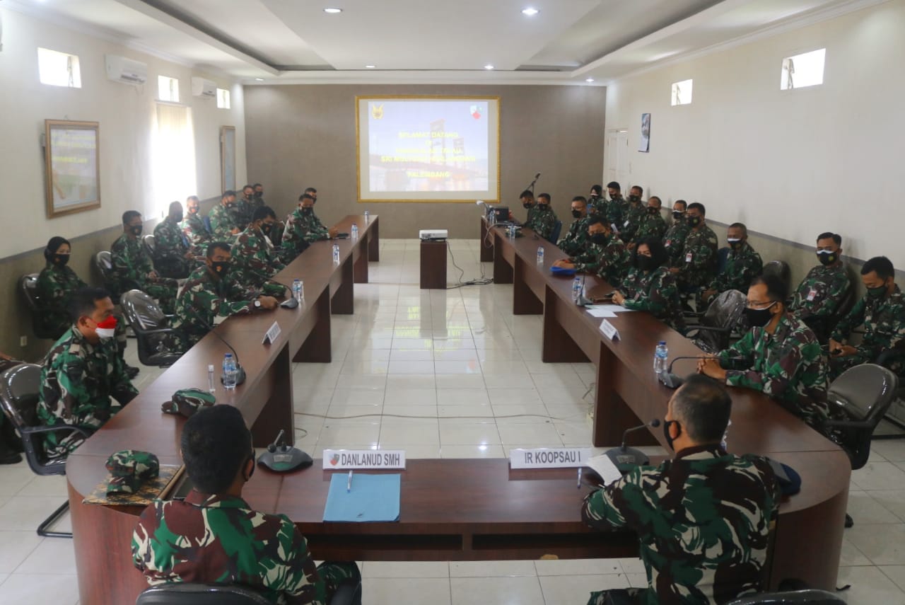PALEMBANG | Populinews.com – Komandan Lanud Sri Mulyono Herlambang Kolonel Pnb Hermawan Widhianto, S.E., M.M, menyambut kunjungan kerja Irkoopsau 1 dan Tim Wasrikap Itkoopsau 1 Marsma TNI Dedy Ghazi E., M.Si, selaku pengendali bersama rombongan dan seluruh Perwira di ruang rapat Suryadarma Lanud Sri Mulyono Herlambang, Rabu, (18/8/21).