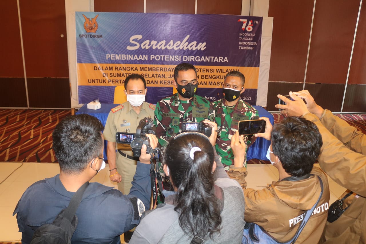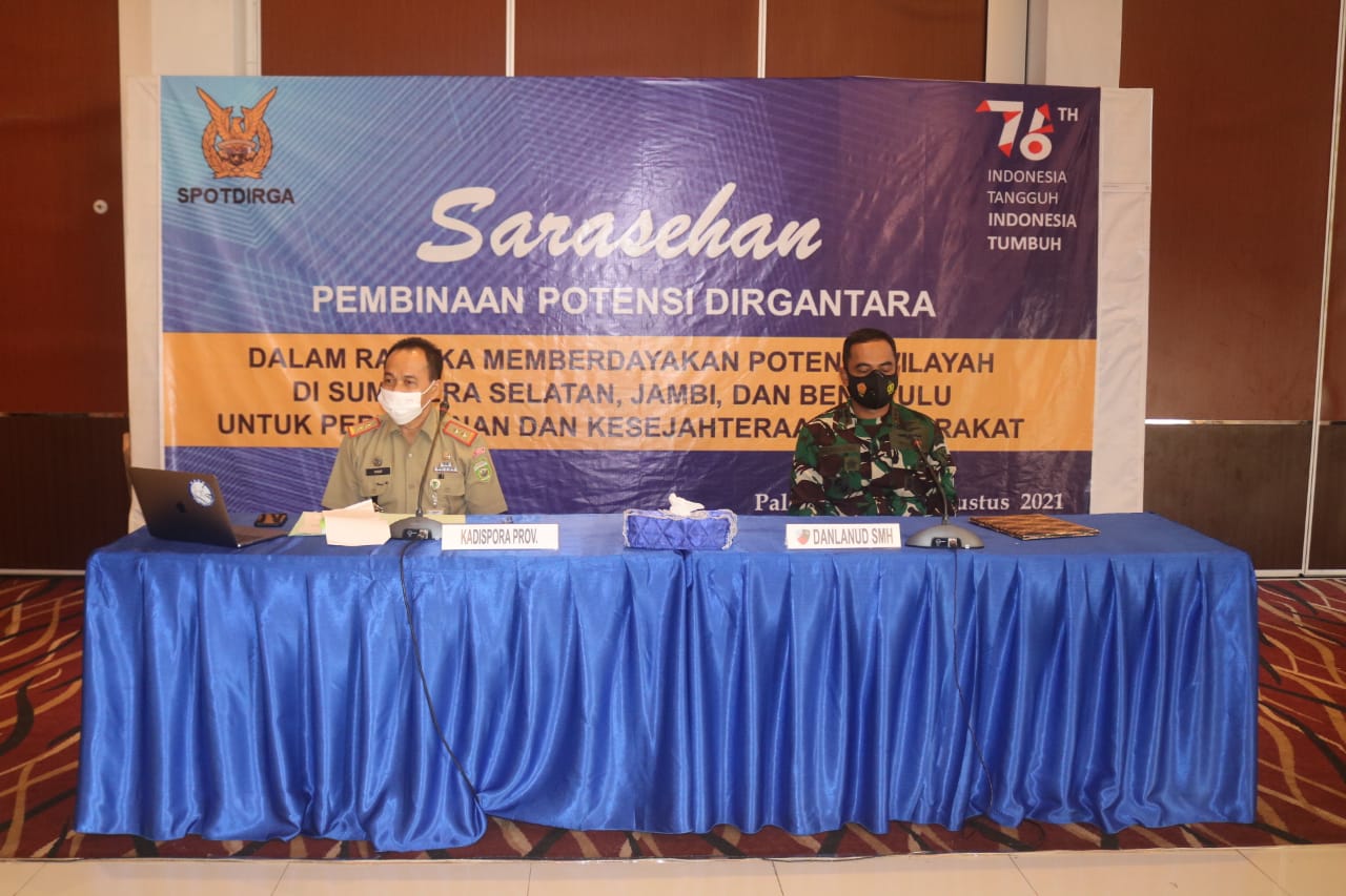 PALEMBANG | Populinews.com — Komandan Lanud Sri Mulyono Herlambang (SMH) Kolonel Pnb Hermawan Widhianto, S.E., M.M,secara langsung memimpin Sarasehan Pembinaan Potensi Dirgantara Tahun 2021, dengan tema ‘Dalam Rangka Memperdaya Potensi Wilayah Di Sumatra Selatan, Jambi, dan Bengkulu Untuk Pertahanan Dan Kesejahteraan masyarakat, bertempat di Nakula Hall Bima Sakti Lanud Sri Mulyono Herlambang (SMH), Selasa (24/08).