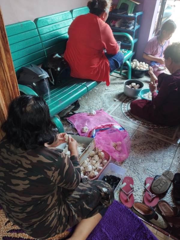 PALEMBANG | Populinews.com — Ada pemandangan baru di kelurahan 12 Ulu Lorong Pedatuan Darat, Kecamatan Seberang Ulu II Palembang, sejak tiga bulan terakhir. Mulai dari depan hingga ke bagian dalam lorong, banyak dijumpai aktivitas warga mengupas kulit Si-Amoy, atau bawang putih impor dari Vietnam di rumah masing-masing. Inilah, Work Form Home (WFH) yang menjadi cara warga bertahan hidup di tengah pandemi Covod-19, yang masih berkepanjangan.