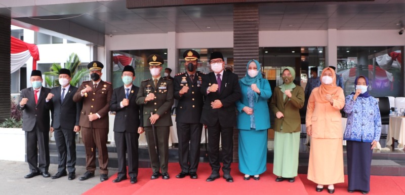 Turut hadir pada kesempatan itu, Ketua DPRD Muara Enim, Dandim 0404/Muara Enim, Kapolres Muara Enim, Ketua Pengadilan Agama, Kakankemenag, Subden Pom, TNI/Polri, ASN, Sat Pol PP Muara Enim, para pelajar dan mahasiswa serta unsur Porkompinda Pemkab Muara Enim.