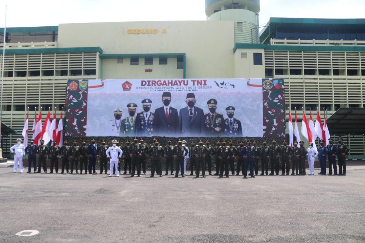 PALEMBANG | Populinews.com – Komandan Lanud Sri Mulyono herlambang (SMH) Kolonel Pnb Hermawan Widhianto, S.E., M.M, ikuti peringatan Hari Ulang Tahun TNI Ke-76 Tahun 2021 secara virtual bersama seluruh Forkopinda Provinsi Sumatera Selatan bertempat di halaman Mako Kodam II Sriwijaya Palembang, Selasa (05/10/2021).