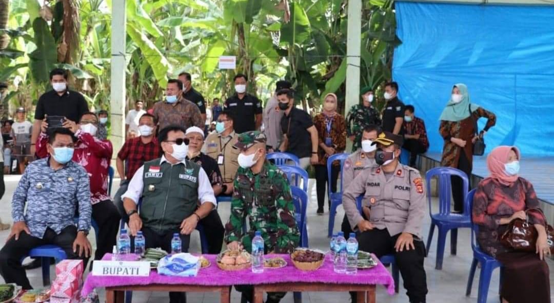 MUARA ENIM – Memastikan pelaksanaan Pemilihan Kepala Desa (Pilkades) Serentak Kabupaten Muara Enim tahun 2021 berjalan aman, tertib dan lancar, Kamis (14/10/2021) Pj. Bupati Muara Enim Dr. H. Nasrun Umar, S.H., M.M., bersama Dandim 0404 Muara Enim, Letkol Inf. Erwin Iswari, S.Sos., M.Tr. (Han) dan Kabag Operasional Polres Muara Enim, Willian Harbensyah, S.I.K., M.H., meninjau beberapa Tempat Pemungutan Suara (TPS) dari 374 TPS yang tersebar di 106 desa pada 20 kecamatan yang menyelenggarakan Pilkades.