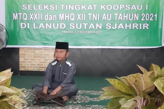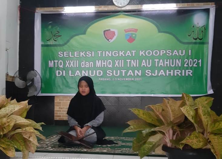 PADANG | Populinews.com — Sebanyak lima personel Kafilah dari Lanud Sutan Sjahrir mengikuti seleksi Musabaqah Tilawatil Qur’an (MTQ), Musabaqah Hafis Qur’an (MHQ) XII TNI Angkatan Udara Tingkat Koopsau I Tahun 2021 digelar di Masjid Baitul Muttaqin Lanud Sut, Selasa (02/11/2021).