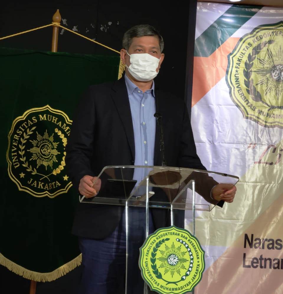 Usai sambutan Dekan FKK UMJ, Dr dr Muhammad Fachri, Sp.P, FAPSR, FISR serta perkenalan oleh moderator dr Muhammad Dwi Putra, Doni pun menuju mimbar. Kuliah umum yang dilaksanakan secara daring sekaligus luring itu, diikuti tak kurang dari 450 an peserta. Jumlahnya akan lebih besar jika ditambah dengan yang menyaksikannya lewat live-streaming akun YouTube FKK UMJ.