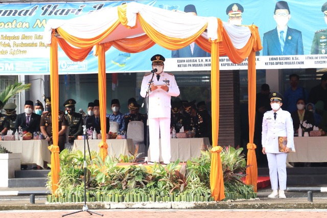 Upacara yang dihelat di Halaman Pemerintah Kabupaten (Pemkab) Muara Enim, Jumat (19/11/2021) tersebut berlangsung sederhana dan khidmat.