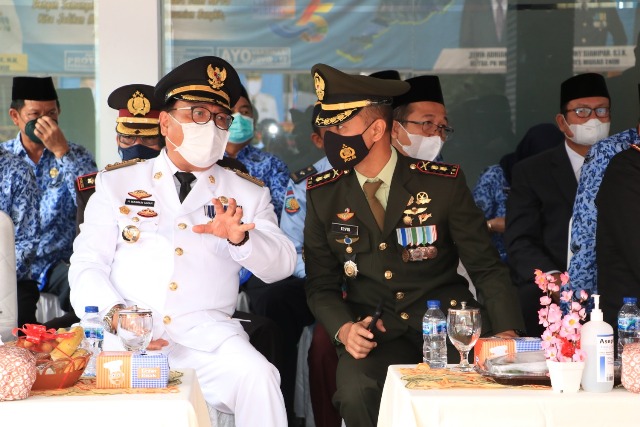 MUARA ENIM – Penjabat (Pj) Bupati Muara Enim Dr H Nasrun Umar SH MM didaulat menjadi inspektur upacara pada peringatan Hari Ulang Tahun Kabupaten Muara Enim Ke-75. Selain itu, secara bersamaan digelar upacara peringatan Hari Korpri ke-50, Hari Kesehatan Nasional ke-57 Hari Guru Nasional ke-28, dan Hari Kesetiakawanan Sosial Nasional ke-63.