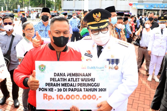 Berdasarkan pantauan, seusai pelaksanaan upacara, Pj Bupati bersama Forkopimda dan Direktur SDM PTBA menyerahkan sejumlah penghargaan dan hadiah, salah satunya kepada atlet Kabupaten Muara Enim yang berhasil meraih medali pada PON XX Papua.