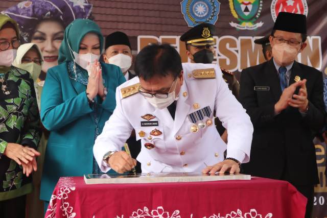 Setelah itu, Pj Bupati Muara Enim meresmikan Gerai Oleh-oleh Muara Enim yang tepat berada di seberang Kantor Bupati Muara Enim.