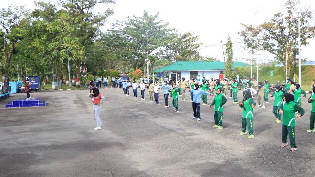PNS TNI Sumbar Ikuti Olahraga Bersama Peringati HUT ke-50 Korpri Di Lanud Sut