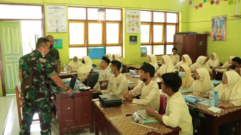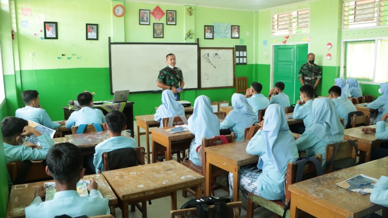 PADANG | Populinews.com — Guna memperkenalkan sekolah Pradita Dirgantara kepada siswa sekolah yang ada di Padang, Komandan Lanud Sutan Sjahrir Kolonel Pnb M.R.Y. Fahlefie, S.Sos., psc, diwakili oleh Kasiminpers Kapten Adm Gustian Marten, S.E, selaku Ketua tim koordinator bersama Letda Sus Adrian, kembali melaksanakan sosialisasi hari ke empat di SMPN 1 dan SMPN 2 Pariaman Padang, Jumat, (14/01/2022).