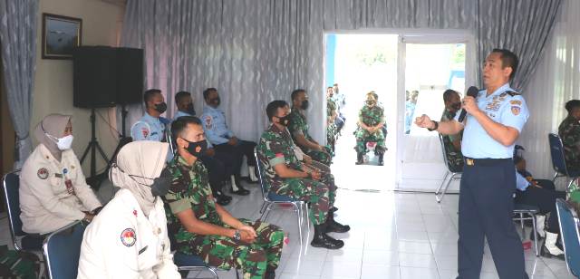 PADANG | Populinews.com — Komandan Lanud Sutan Sjahrir Kolonel Pnb M.R.Y. Fahlefie, S.Sos., psc, bersama para Kepala Dinas (Kadis) segenap Perwira, Bintara, Tamtama dan PNS Lanud Sut mengikuti Safari Bintal TNI AU dari Dinas Pembinaan Mental dan Ideologi TNI AU (Disbintalidau), bertempat di Crew Room Baseops Lanud Sut, Kamis (3/2/2022).