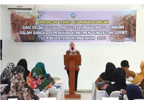 BINTAN | Populinews.com – Puluhan pelaku usaha mengikuti Bimbingan Teknis Keamanan Pangan bagi Industri Rumah Tangga Pangan dalam rangka Pemenuhan Komitmen Penerbitan SPPIRT se-Kabupaten Bintan tahun 2023. Dibuka langsung oleh Ketua TP-PKK Bintan, Hafizha Rahmadhani, kegiatan berlangsung selama dua hari dengan beberapa narasumber kompeten, Senin (05/06) di Hallo Bintan.
