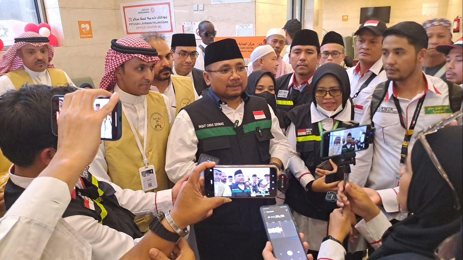 “Kalau sebelumnya jatah Zamzam hanya 5 liter, tahun ini kita putuskan menambahkan 5 liter Zamzam untuk jemaah haji dan petugas,” terang Menag Yaqut diikuti teriakan alhamdulillah dari para jemaah, di Syisyah-Makkah, Senin (3/7/2023).
