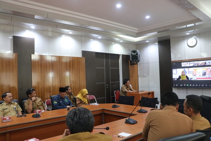 MUARAENIM | Populinews – Rapat Virtual Pembahasan Persiapan Kegiatan Bedah Rumah secara Serentak se-Sumatera Selatan melalui aplikasi Zoom. Di Ruang Rapat Bupati Muara Enim, Senin (12/02).