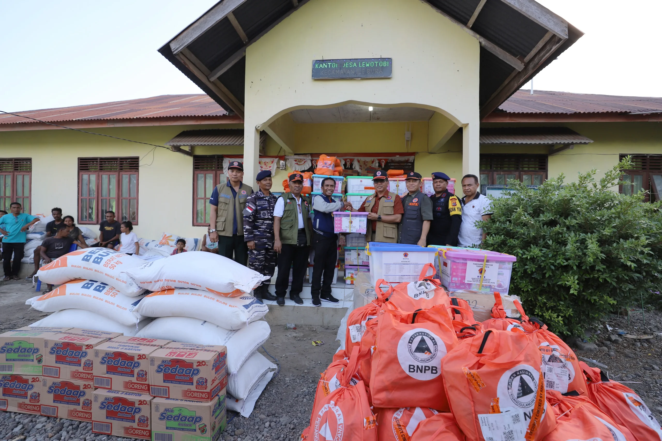 Bantuan yang dibawa BNPB untuk warga Desa Lewotobi meliputi paket sembako 50 paket, hygene kit 20 paket, makanan bayi 20 pack, matras 100 pcs, sleeping bag 20 pcs, tenda keluarga 2 unit, selimut 15 pcs, dan kasur lipat 20 pcs.