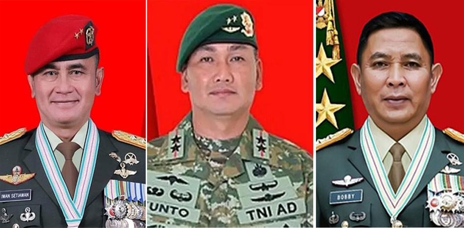 Ketiga jenderal bintang itu yakni Letnan Jenderal (Letjen) Iwan Setiawan, Letjen Kunto Arief Wibowo, dan Letjen Bobby Rinal Makmun.