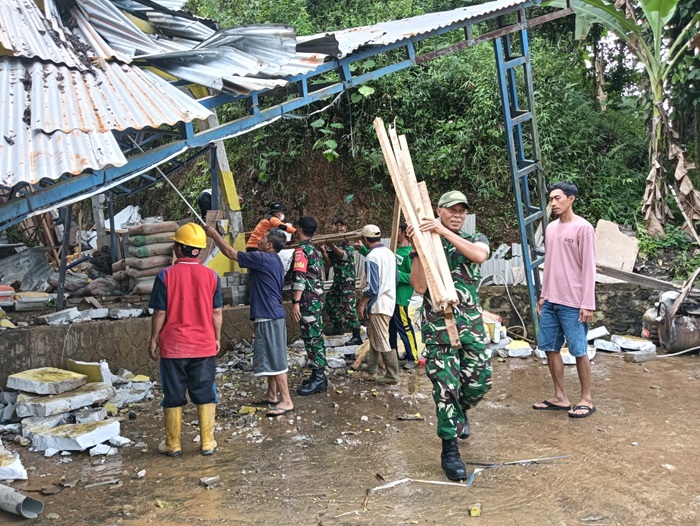 TNI-Polri dan Warga Bahu Membahu Bersihkan Material Longsor
