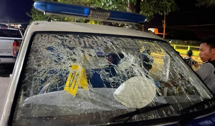 – Mobil dinas Sat Lantas Polres Jayawijaya (Toyota Kijang nopol XVII 1101-29) yang mengalami kerusakan serius, yakni: