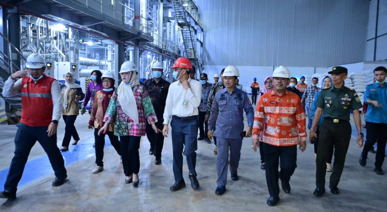 Wabup Netta didampingi sejumlah Kepala OPD seperti, Kepala Dinas Ketahanan Pangan, Masita Liana, S.P., Kepala Dinas Koperindag dan UMKM, Ir. Alfian, M.M., Kabag Kesra, H. Sashadiman Ralibi, S.Ag., M.Si., dan Inspektur Banyuasin Ir. Zakirin, S.P., M.M., CGCAE., mengecek pabrik penggilingan dan pengemasan sejumlah dengan merk dagang beras premiun milik Wilmar.