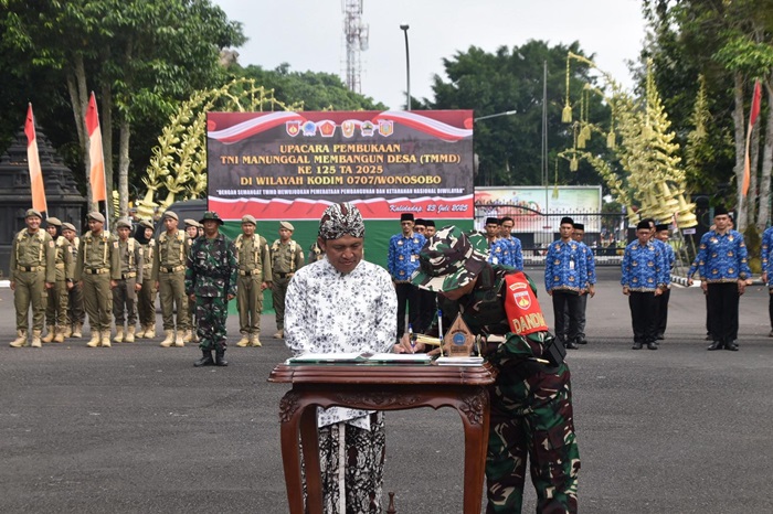 WONOSOBO | Populinews.com – Bupati Wonosobo Afif Nurhidayat secara resmi membuka TNI Manunggal Membangun Desa (TMMD) Sengkuyung Tahap III Tahun 2025 di Halaman Pendopo Bupati, Rabu (23/7/2025).