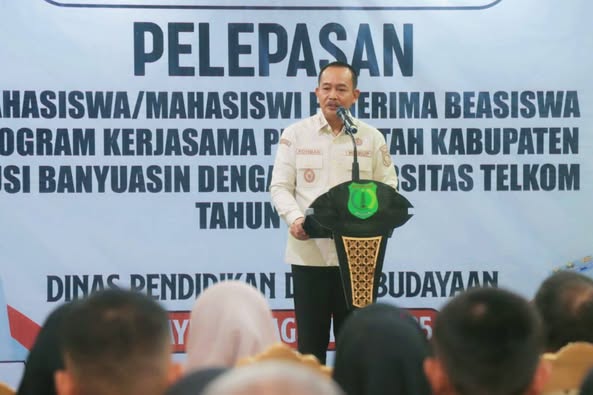 Yang pada kesempatan ini dihadiri langsung oleh Wakil Bupati Muba Rohman. Dalam sambutannya mengatakan, hari ini adalah hari yang penuh makna yaitu hari pelepasan bagi putra putri berasal dari kabupaten Muba yang akan menjadi calon mahasiswa Universitas Telkom Bandung penerima bantuan beasiswa Pemkab Muba.