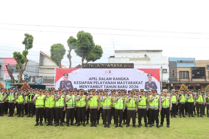 WONOSOBO | Populinews.com – Kapolres Wonosobo AKBP M. Kasim Akbar Bantilan memimpin apel kesiapan pasukan penebalan pengamanan malam pergantian tahun di halaman Mapolres Wonosobo, Rabu pagi, 31 Desember 2025. Apel yang dimulai sekitar pukul 07.30 WIB itu digelar untuk memastikan kesiapan personel tambahan yang akan memperkuat pengamanan malam Tahun Baru.