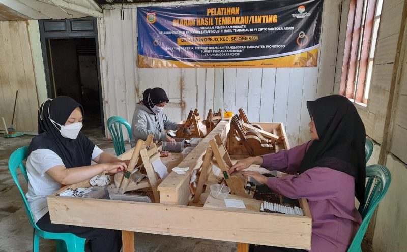 Seperti dilakukan Disnaker Perindustrian dan Transmigrasi Wonosobo belum lama ini, yakni melaksanakan 3 (tiga) kegiatan pelatihan, yakni pelatihan peningkatan kapasitas SDM industri hasil tembakau (rokok Sigaret Kretek Tangan/SKT) yang dilaksanakan di CV. Cipta Santosa Abadi, Serang, Kelurahan Wonorejo, Kecamatan Selomerto. Pelatihan berlangsung pada 25 Februari hingga 3 Maret 2026 lalu (tujuh hari kalender)