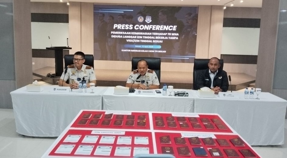 KOTA BEKASI | Populinews.com – Kantor Imigrasi Kelas I Non TPI Bekasi menggelar konferensi pers pada Rabu (15/4/2026) di aula kantor Imigrasi Bekasi. Kegiatan ini dilakukan sebagai bentuk keterbukaan informasi publik terkait hasil penindakan keimigrasian terhadap warga negara asing (WNA).