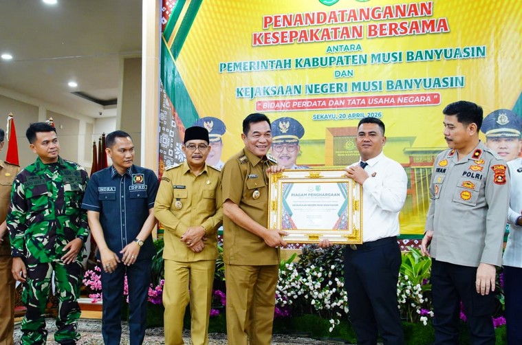 SEKAYU | Populinews.com – Perkuat tata kelola pemerintahan yang baik dan aman secara hukum, Pemerintah Kabupaten Musi Banyuasin (Pemkab Muba) bersama Kejaksaan Negeri Muba menandatangani Naskah Kesepakatan Bersama Bidang Perdata dan Tata Usaha Negara. Penandatanganan digelar pada Senin (20/4/2025) di Guest House Griya Bumi Serasan Sekate.